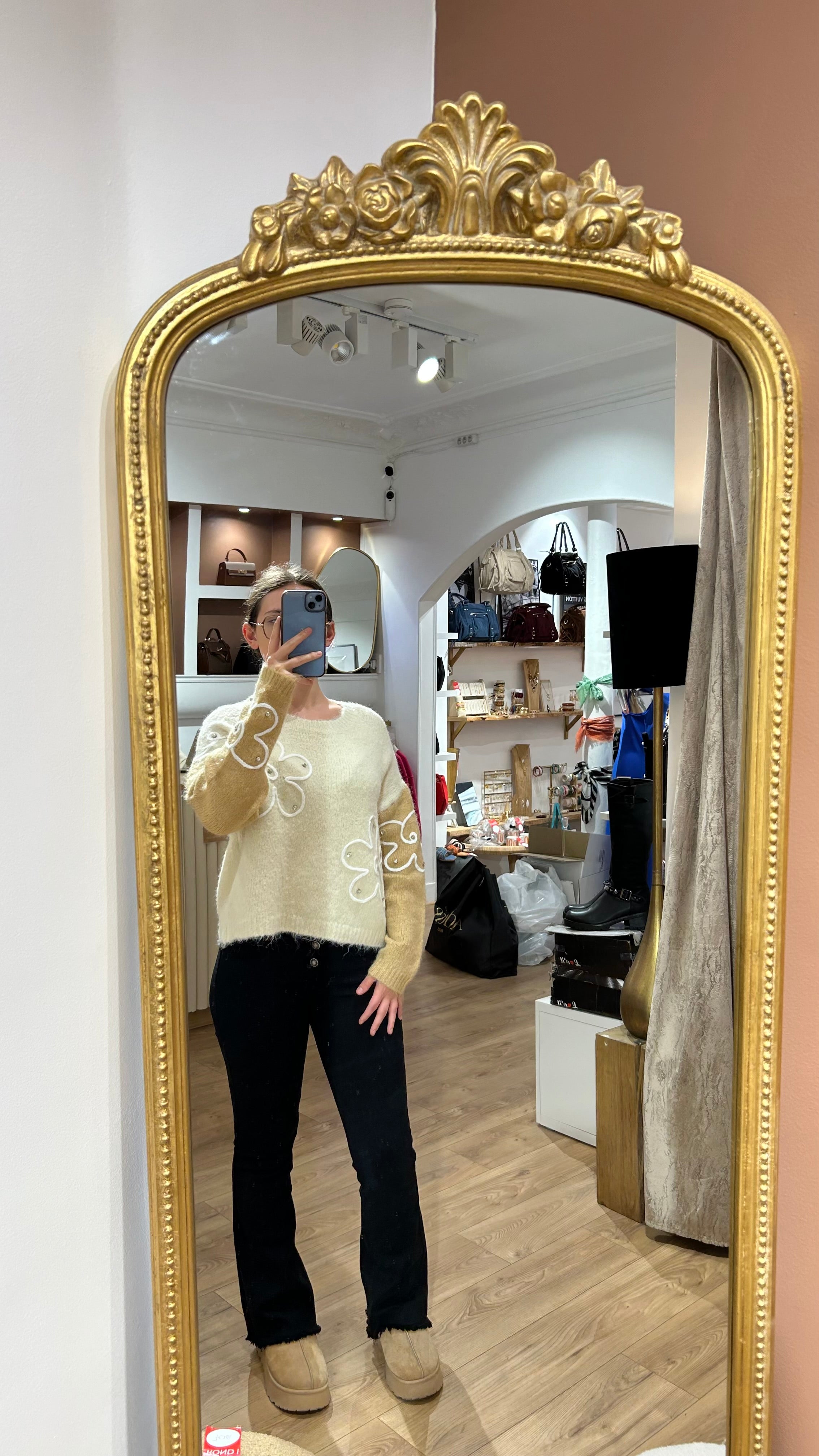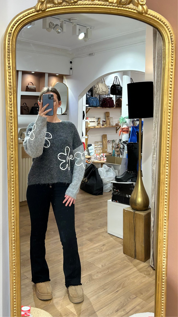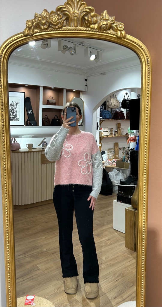 Pull fleuri strass